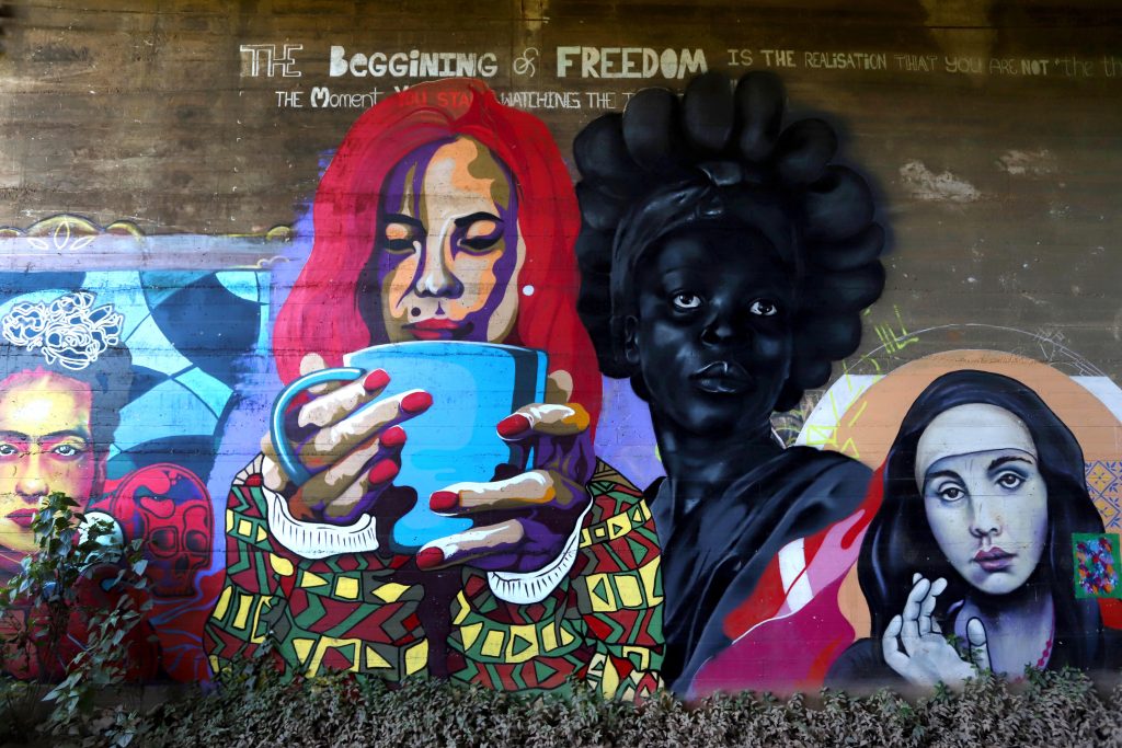 The space converges mural art and storytelling through interactive content that can be accessed via QR code.